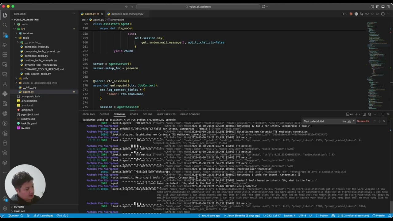 stt_node: Intercepts transcription to handle wake word detection and mute statellm_node: Manages dynamic tool loading based on conversation intenton_user_turn_completed: Cleans up unused tools after each turn